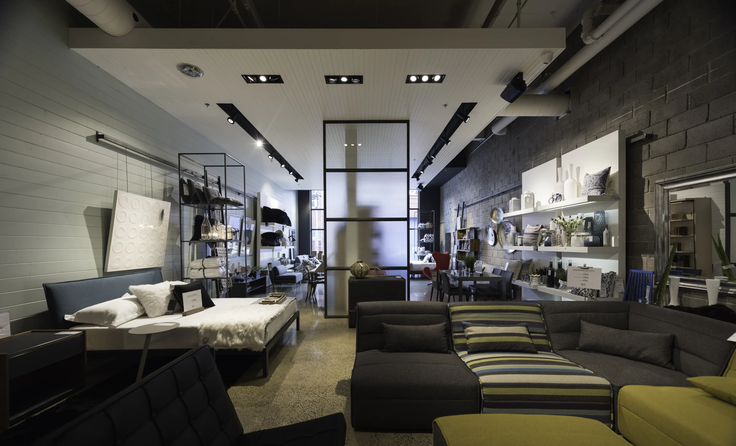 Située dans le quartier de Griffintown, cette toute nouvelle boutique MUST a été réalisée à l’intérieur d’anciennes suites industrielles des années 50. Les matériaux principaux et les lanterneaux du toit d’origine ont été soigneusement intégrés au design de ce tout nouveau concept One stop shop.