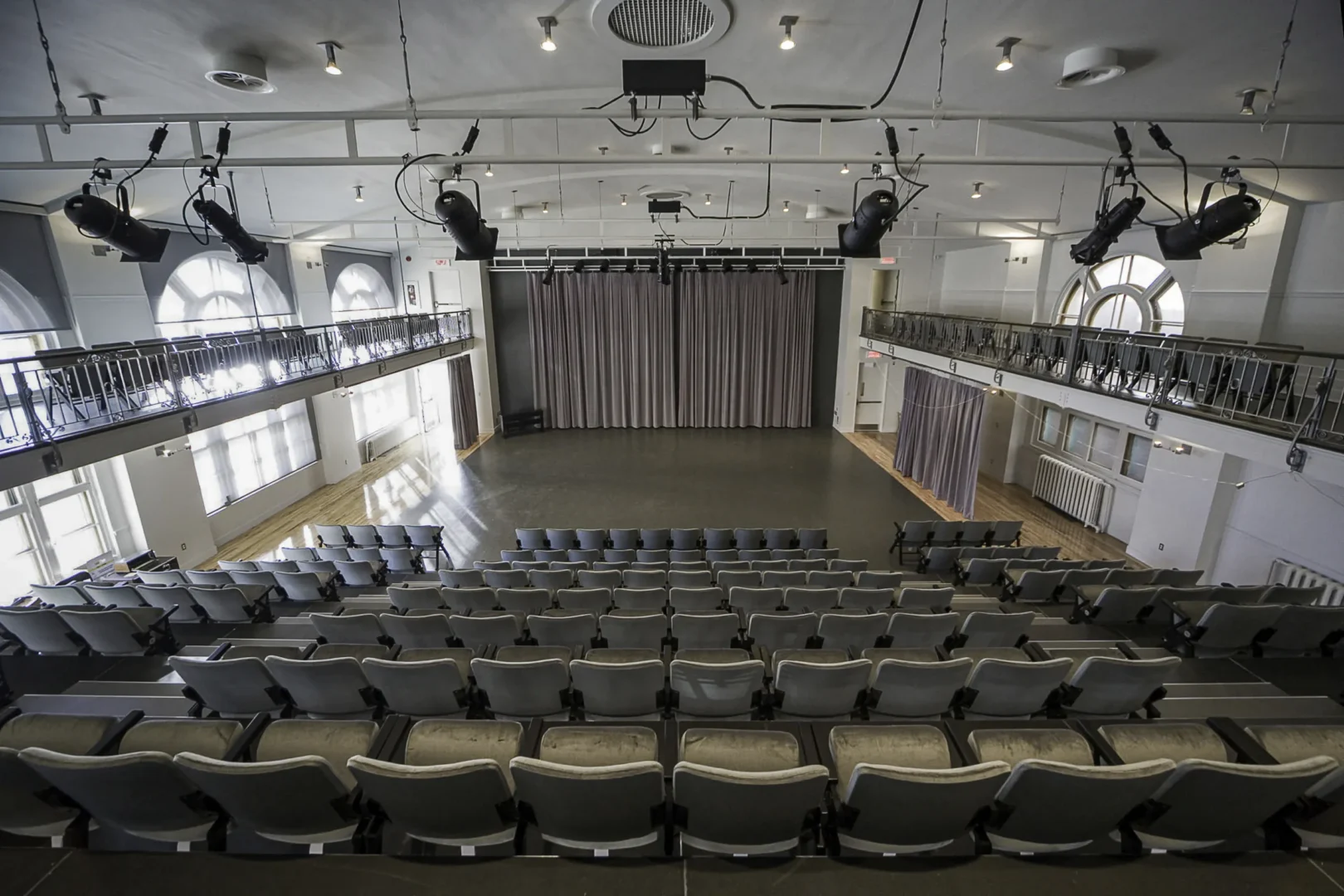 Dans les deux autres sections du bâtiment ont été aménagés une classe de danse, un studio pouvant accueillir un auditoire de 350 personnes et un gymnase.